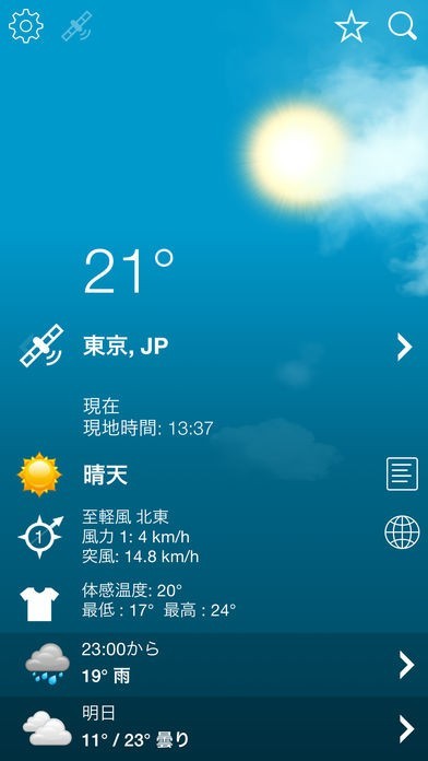 かなり見やすいアプリなので、ストレスなく天気をチェックできます。動作もサクサクです。