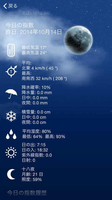 天気予報の多くは詳細な情報を提供していますが、湿度や翌日などのコンテンツは別ページで、という構成が一般的となっています。このアプリでは情報をまとめて表示してくれる点が特徴となっており、忙しいときや目が離せないようなシーンでもサッと確認することが可能です。長期間の時間別予報も魅力のひとつで、ショッピングや通院のほか旅行前の行動計画にも役立ちます。