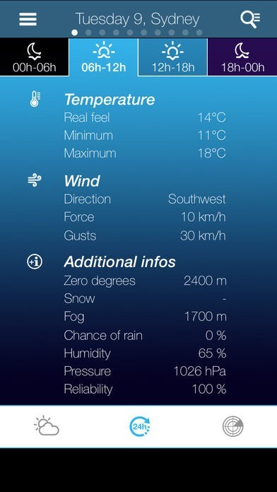 オーストラリアの国内の都市の天候データ、予報を確かめることが可能です。数字だけではなく、太陽や傘マークといった大きなイラストつきで表示されるので一覧ですぐに把握しやすくなっています。