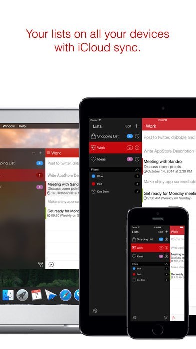 - iOS と OSX デバイス間で利用できる iCloud 同期を搭載した(iPhone、iPad 用)ユニバーサルアプリ