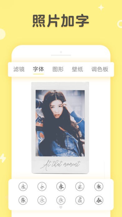 美しい写真に仕上がったら、いろいろと飾り付けていきましょう。写真に書き足すことのできるフォントは、漢字や英語があり100を超えています。とっておきのポートレート写真を作ってください。
