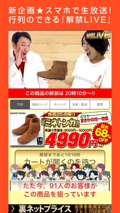 割引商品の販売を映像で楽しめる解禁LIVE