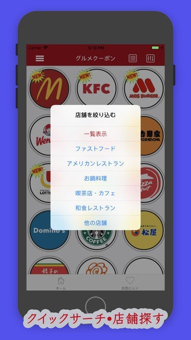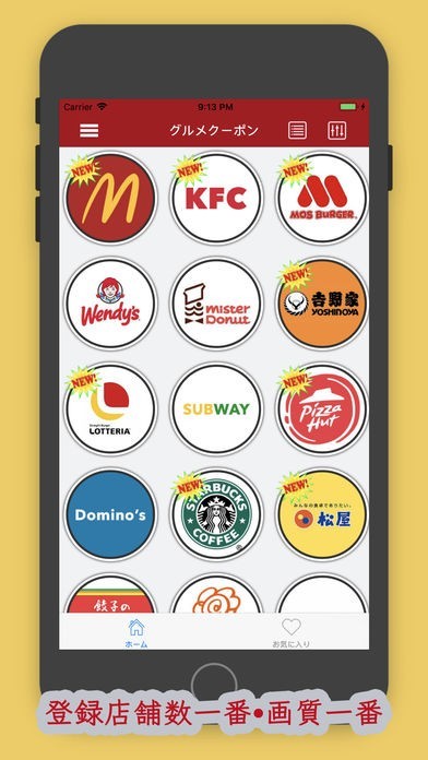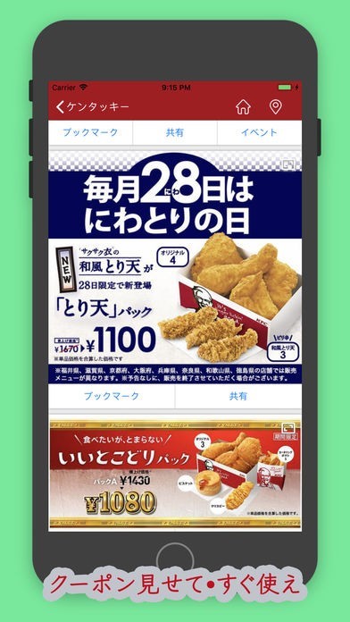 マクドナルドなど全国チェーンのお店の商品情報や、割引情報を取得することができます。クーポンは保存することができるので、オフラインの状態でも見ることができ、そのまま使用できます。