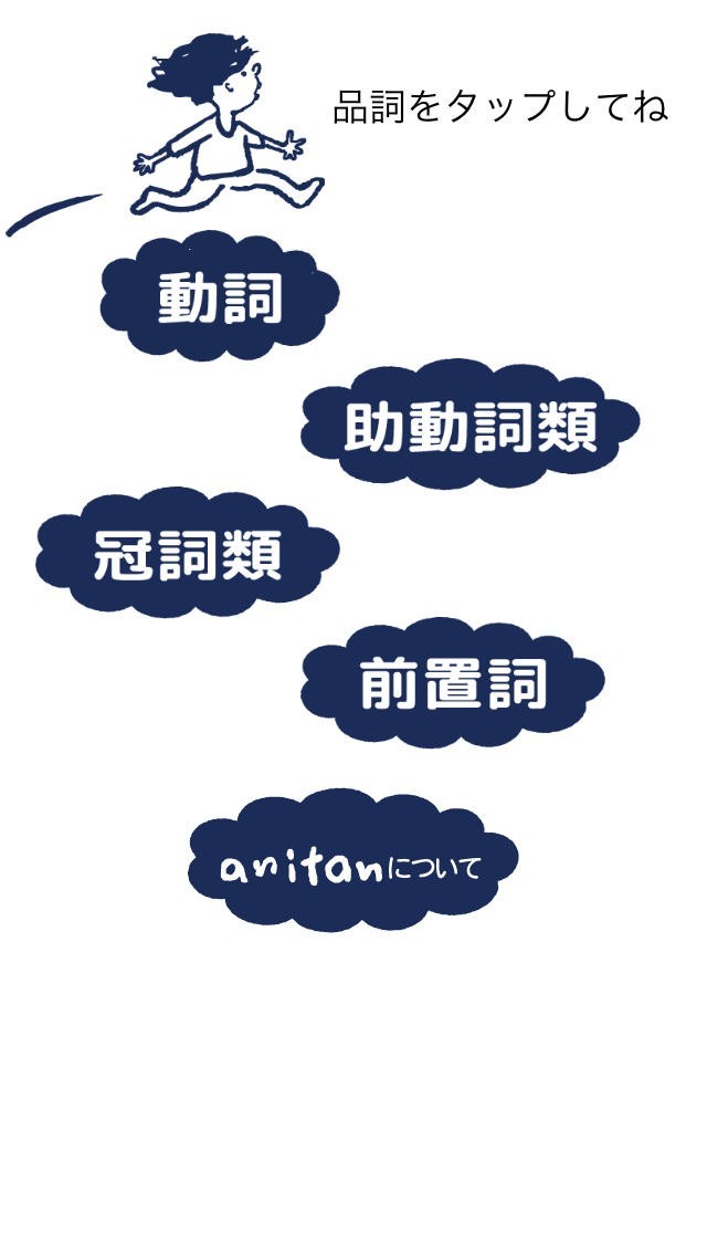 自分が勉強したい品詞をタップし、覚えられるまでイラストと単語を反復して学習!