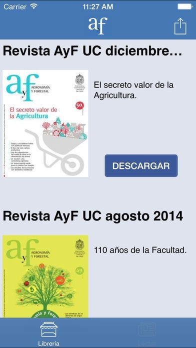 App Storeより引用Agronomía y Forestal UC es una publicación de Extensión y Desarrollo de la Facultad de Agronomía e Ingeniería Forestal de la Pontificia Universidad Católica de Chile, está orientada a las empresas y personas relacionadas con el sector silvoagropecuario. Esta revista busca informar al lector en el ámbito de las innovaciones y analizar las variables relevantes y las situaciones coyunturales que afectan la toma de decisiones de los profesionales del sector. Asimismo muestra el quehacer de la Facultad a través de los trabajos e investigaciones aplicadas de sus profesores.