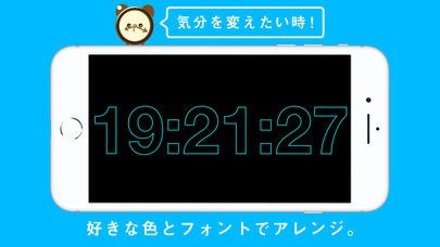 シンプルイズベストな時計のアプリ。画面一杯に時間を表示してくれるため、非常に見やすい。
