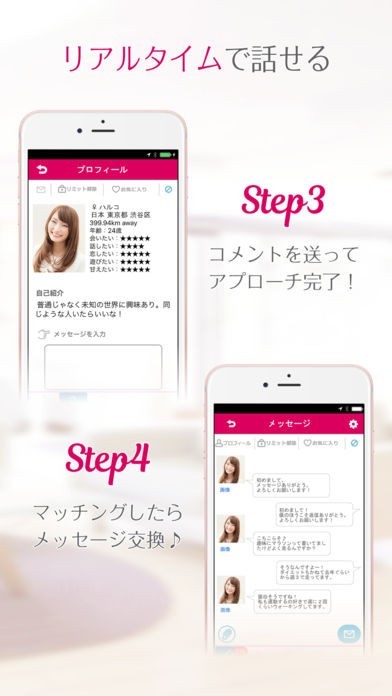 簡単に自分好みの人と出会うことができます。仕事ばかりになっていてどうしても出会いの場に行くことができないときには最適のアプリです。運命の人を見つけて友達に自慢できるようになります。