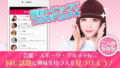 「出会い恋活二人のSNS」は、SNSを使用して仲の良いパートナーを作る事ができる、便利なSNSアプリです!相手のプロフィールを見てコンタクトを取れるので、好みの相手と仲良くなる事が可能です!