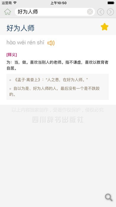 海笛科技携手四川辞书出版社官方权威正版发布,具有手机上便捷的查询功能,还有清晰发音、收藏复习等辅助学习功能。选择正版词典,学习更有保障!(版权所有,盗版必究)