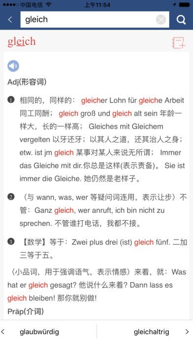 (4)词汇和例句发音:德语和汉语词条、德语例句均配清晰发音,让你德语脱口而出。