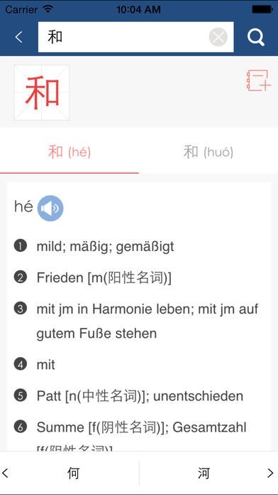 App Storeより引用外研社经典词典,适合德语学习者使用。《外研社现代德汉汉德词典》于2003年1月第1版发行,手机版与2009年7月第3次印刷版同步,是德语单词查询的便捷工具,也是德语阅读、德语写作、翻译查询的得力助手,词典共收德汉汉德词五万余条,除基本词汇外,还收录了近年来社会政治、经济、外贸、法律、科学、技术、文化生活等各方面的新词汇和术语。海笛携手外研社官方正版发布,具有通知栏快捷查词等便捷查词功能,还有德语/汉语词条均可真人发音、德语例句发音、生词收藏和复习等辅助学习功能。选择正版词典,学习更有保障!(版权所有,盗版必究)