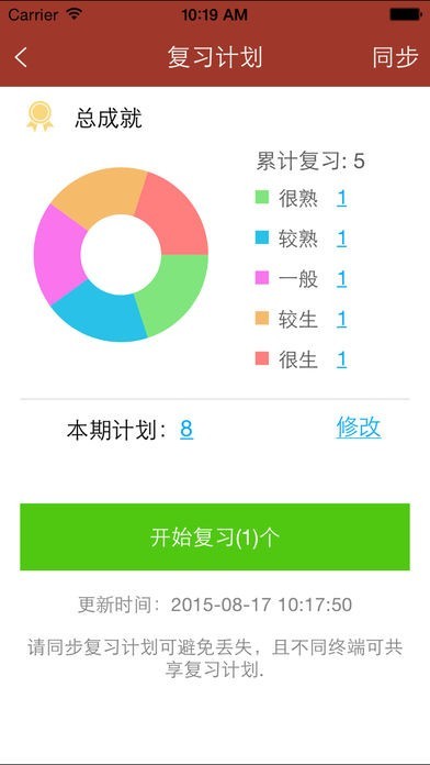(5)云生词本:采用云端同步技术,为用户提供生词同步学习服务,可以收藏和复习生词。