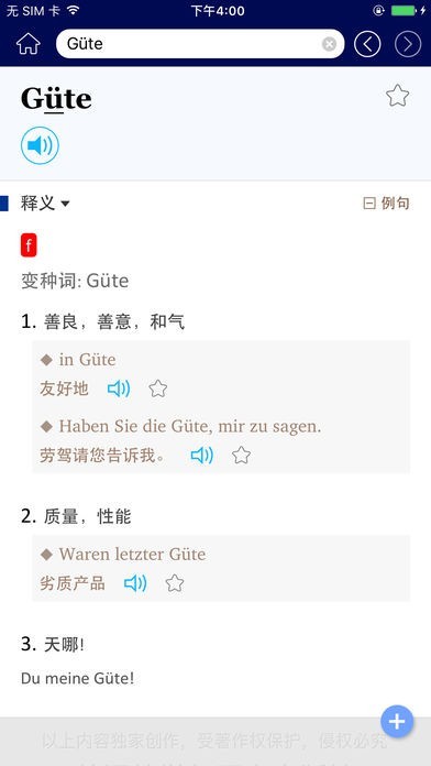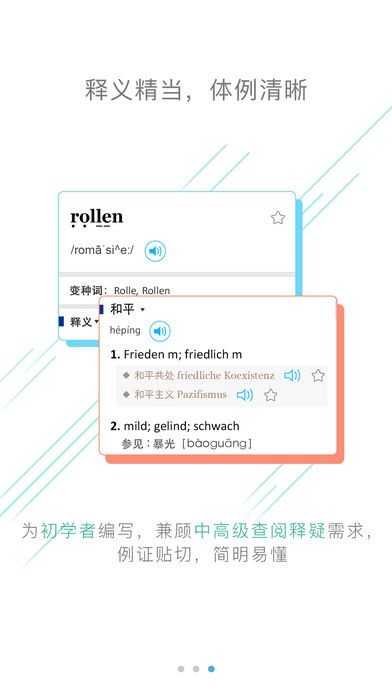 App Storeより引用收词新颖、时代感强、释义准确、双向查阅,适合初中级学习者使用,也可供专业人员日常查阅的理想德汉工具书。《外研社·精编德汉汉德词典》2017年3月第1版手机版同步发行。