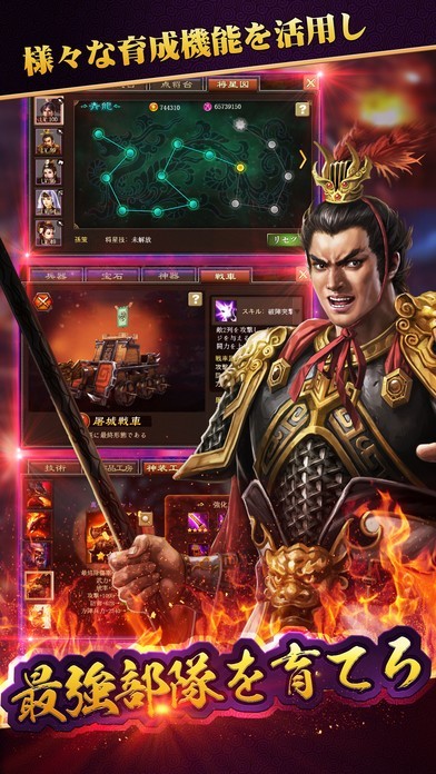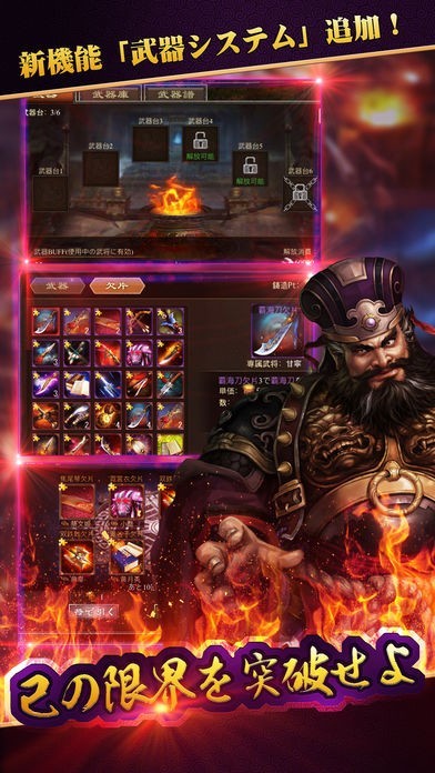育成機能では、プレイヤーの好きなように武将の力を伸ばすことができます。新しく追加された、「武器システム」と組み合わせて、自分だけの最強の武将を誕生させましょう。