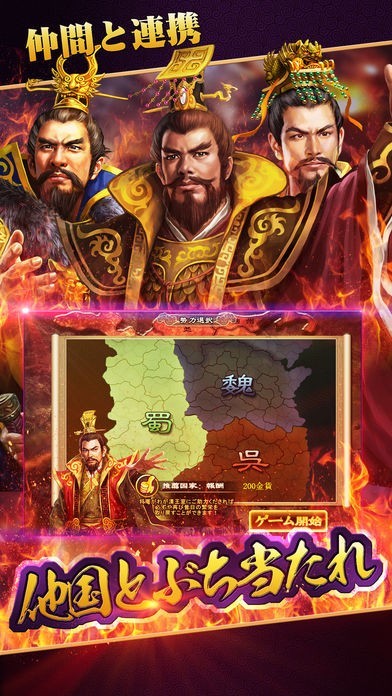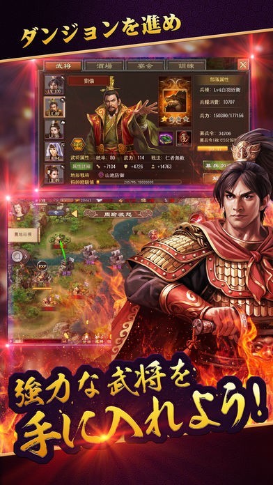 中国史でも人気の三国時代を舞台にしたリアルタイムシュミレーションゲームです。戦略性の高い本格派バトルが楽しめます。曹操、劉備といった人気武将を操って三国統一を目指しましょう。