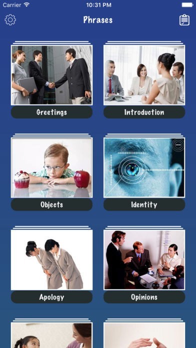 単純な単語や挨拶、さらにはビジネスシーンで使うものまで、実用的な韓国語フレーズが学べます。韓国旅行から出張まで、目的に合わせて学習メニューを選べるようになっています。