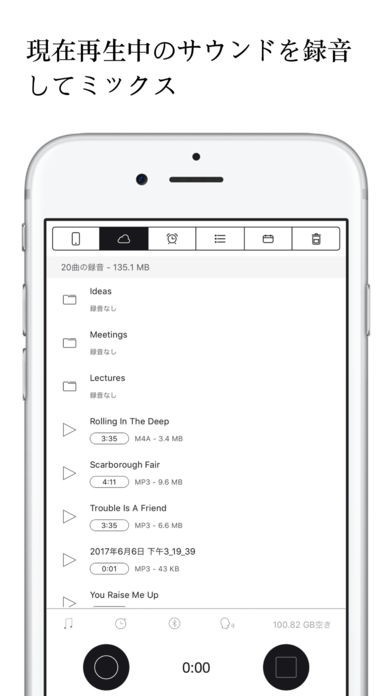再生している音楽をリアルタイムでミックスできるのが「ディクタフォン (PRO)」のメリットです。ミックスしたい音楽を録音して、それらの音楽を分割したり結合できます。編集を別のアプリで分けてやる必要がありません。