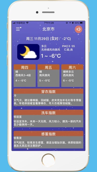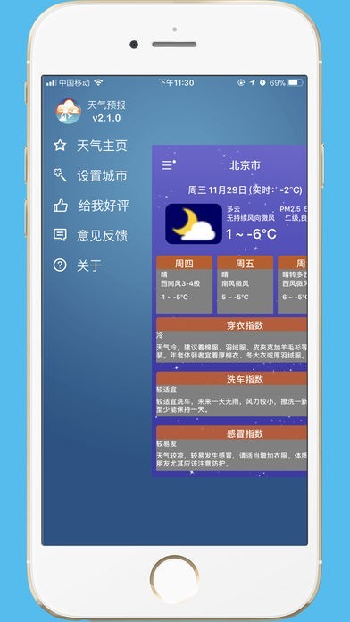 4.生活指数:提供穿衣、洗车、紫外线、感冒、运动、旅游等生活指数。