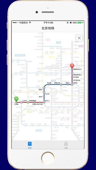 查看全国主要城市的地铁线路图和站点数据,支持设置起点和终点以后计算换乘方案。