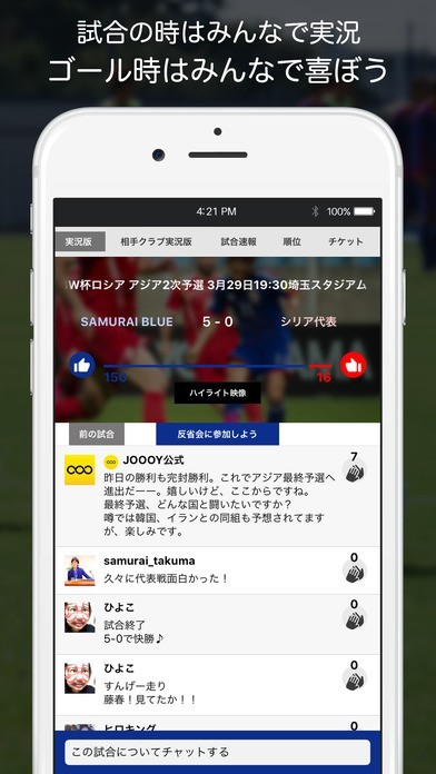 App Storeより引用JOOOY-ジョイ-はJリーグのクラブを応援するサポーター専用SNSアプリです。