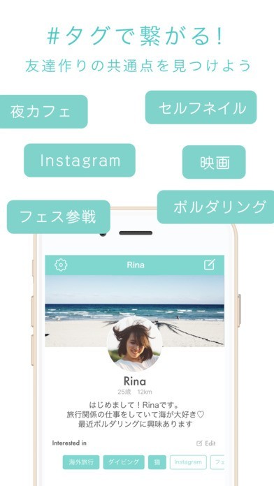 興味があるものについて登録しておくことによって、同じ趣味を持った方とつながれる可能性を与えてくれるので、趣味友を作りたいような方に向いていますし、自分の近くにはいない珍しいものが好きな方を発見することができることによって、語り合える仲間を見つけ出せつかもしれません。 「タグ」を登録しておくことによってそのタブをタップするだけですぐに同じものが好きな方を見つけ出すことが出来ます。 また自分の近況などを発信することによって、コメントを記載することができる機能がついているので、書いてくれる人がいればそこからリアクションをいただくことによってどんどんと仲良くなれます。 また、「レコメンド」機能によって、何もしなくても推薦があるので、気楽にきっかけを与えてくれます。 それ以外にも登録にはフェイスブックのアカウントが必須であるので、本名であり、信頼できる方のみが集まっているので、複数アカウントで登録していて不快な思いをする可能性を減らすことができます。 そして何よりたくさんの友人を作ることによって人生を豊かにすることが出来ることがこのアプリの一番のメリットであるので、使ってみるのがいいでしょう。