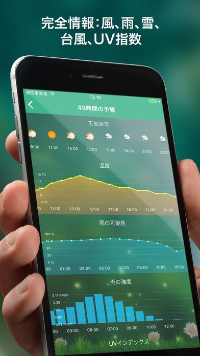 サラリーマンや主婦の方など幅広い方にお使いいただけます。今日の天気のみでなく気温や湿度風速までわかるのでその日一日の予定を立てるときにも便利です。見やすい画面でライフスタイルをサポートしてくれます。