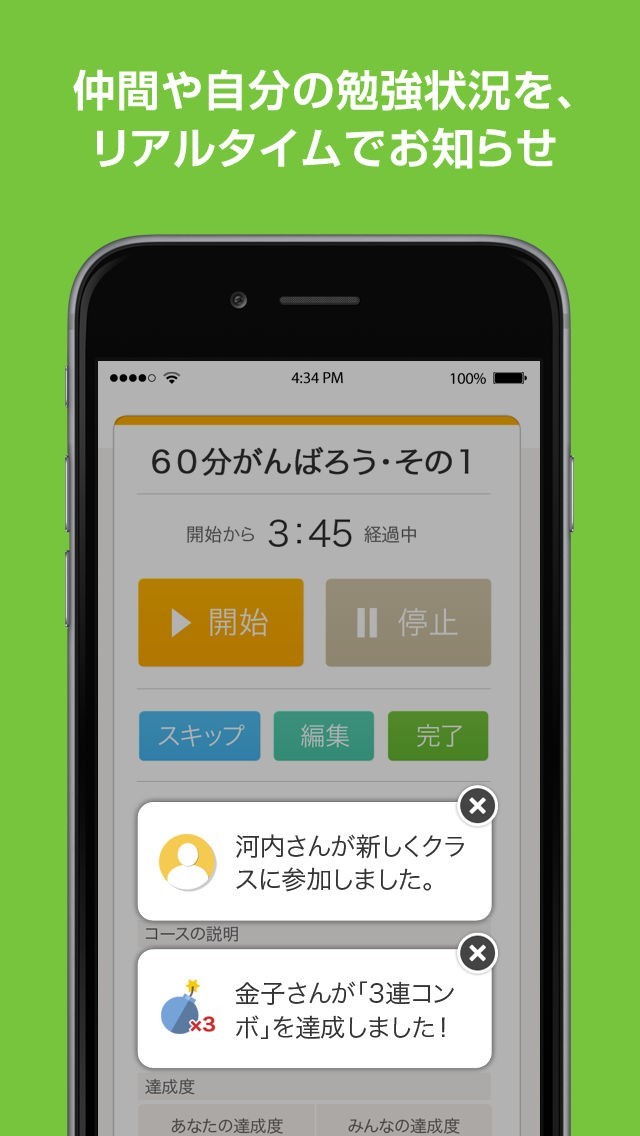 ・仲間や自分の勉強状況や頑張りがリアルタイムでお知らせされる&やる気もアップ!