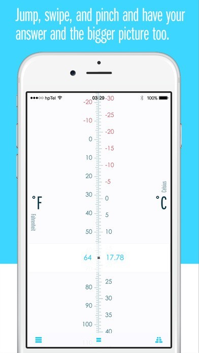 メジャーを基本とするユニークな形の単位換算アプリです。中央に縦軸のメジャーが存在し、左右に比較したい単位が並ぶ形になります。視覚的に分かりやすいデザインといえるでしょう。