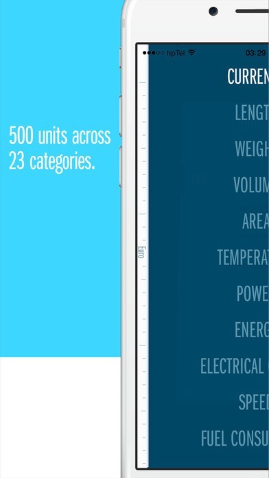 対応している単位は通貨・長さ・質量・面積・温度・電力・エネルギー・速度・加速度・時間・密度などを含め他にもたくさんあります。このアプリさえあれば複数の単位系を扱う必要性に迫られたときも問題ありません。