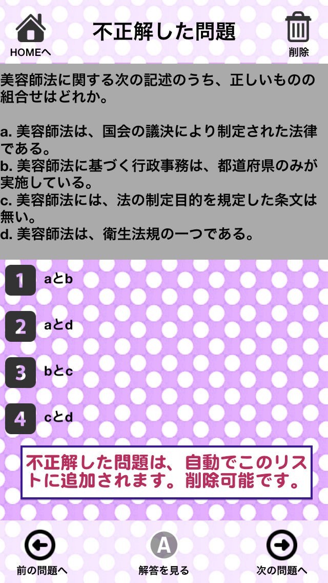美容師国家試験 筆記試験対策 一問一答問題集のスクリーンショット