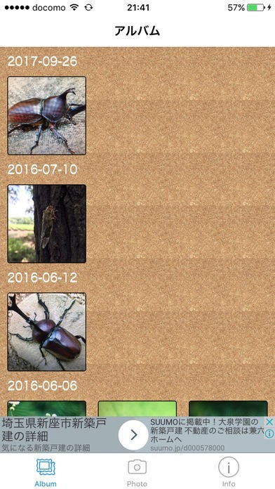 また、撮った虫は、採集場所とともに記録することができます。