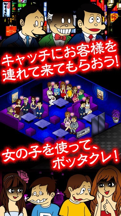 「ぼくのボッタクリBAR」はボッタクリBARを経営し客から大金をぼったくる新感覚のゲームです。大きな借金を背負ってしまったプレイヤー。人生をやり直すためにはボッタクリBARで稼ぐしかない!なんば店など関西にある十三店舗のボッタクリBARを経営し、キャッチや女の子、用心棒を使って客からたくさんのお金をぼったくろう!超高級酒や激アツイベント「バブルモード」を活用すれば大金ゲットも夢じゃない!警察に注意しながら人生をかけた戦いを身を投じてみよう!