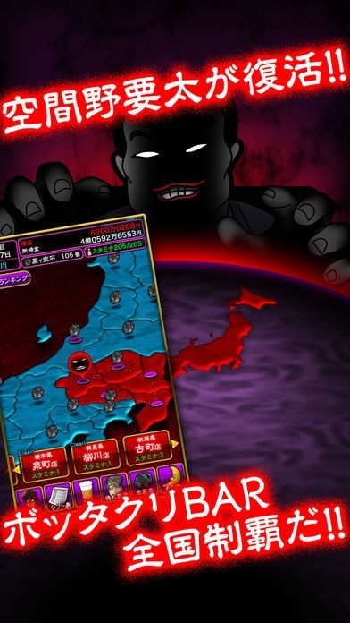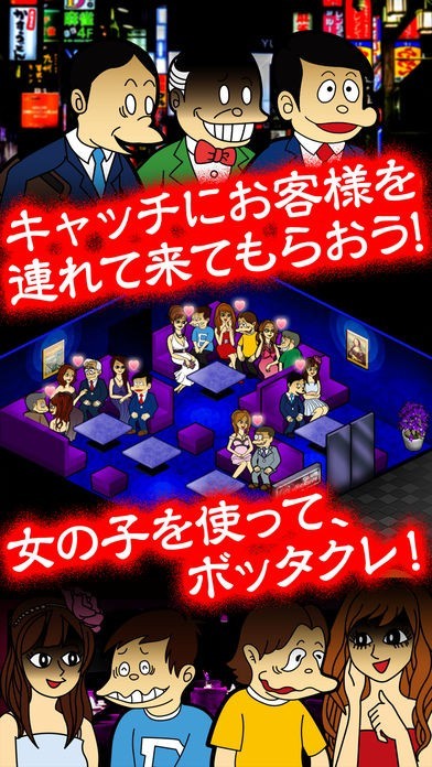 ゲームの世界だからこそジョークで済む「ぼったくりバー」を舞台に、売り上げを伸ばして日本制覇を目指す経営シミュレーションゲームに挑戦できます。ブラックな世界観に思わずハマりそう。