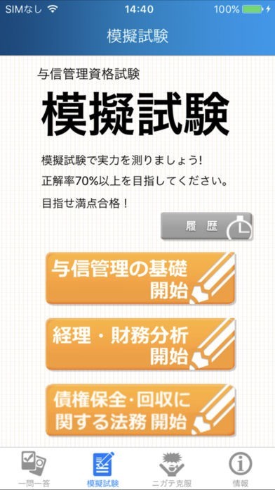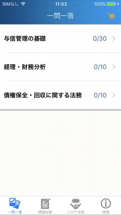 与信管理士認定試験問題集は与信管理士を目指すために「与信管理の基礎」「経理・財務分析」「債権保全・回収に関する法務」の科目について模擬問題を解くことで学ぶことのできる勉強アプリです。30問の模擬問題が無料で用意されており、さらに30問の模擬問題は課金することで出題を受けることが出来ます。問題は基本的に選択式となっており、場所を選ばずスピーディに学習ができます。また本番の与信管理士認定試験を想定した、模擬試験モードも搭載しています。