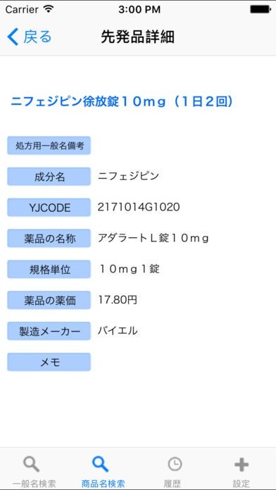 うっかりお薬チェッカ 処方用一般名のスクリーンショット
