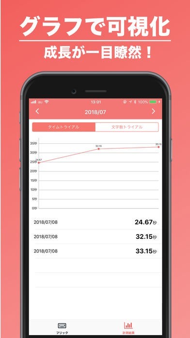 グラフを参照することによって自分が今までどのくらいの速さで入力を完了することができているのか調べることができます。一目で成果が分かるので、モチベーションを高められます。