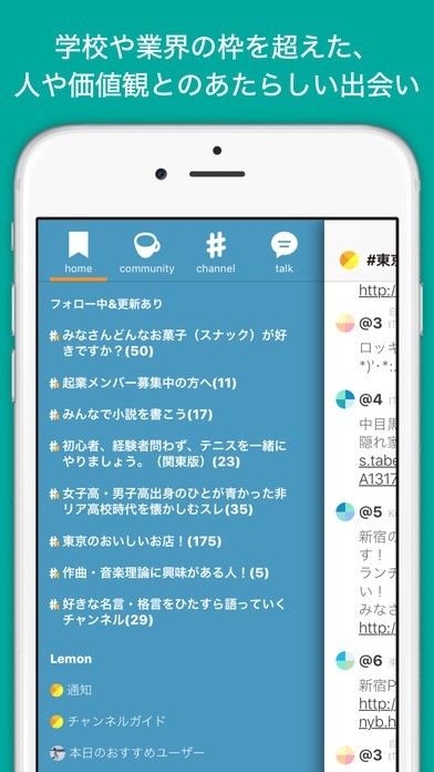 自分がいる業界や学校の人たちと集まっているだけでは、なかなか新しい発想を得ることは難しいもの、全く別の専門分野の業界や学校の人たちと交流することで新しい価値観や考え方を得ることが出来るものです。Lemonは5000以上の学校と30以上の業界の組織が参加していて、興味や趣味を通じて別の学校や業界の人たちと交流をすることが出来るようになるアプリです。コミュニティを作って雑談をしたり、メッセージのやり取りをすることで交流を深めることが出来ます。
