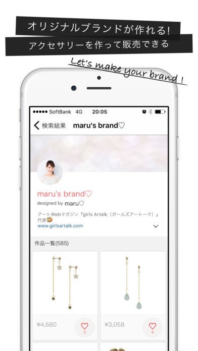 ハンドメイドに興味があるけど作る自信がない、難しそう。自分のオリジナルアクセサリーを作ってみたい、そんな方にピッタリなハンドメイドマーケットアプリです。スマホ一台で工具一切不要、あなたのセンス一つで有名アクセサリーアーティストになれるかも?!