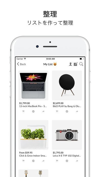 テレビやネットで見かけた良い商品、買いたいのだけどお財布事情や諸々の理由で諦めることがあります。そのあとになって買いたいと思ってもどんな商品だったか思い出せないことありませんか?もしくは特価で売り出されていたことを知らず買い時を逃してしまうこともあるかもしれません。「Savelist」はあなたが欲しいと思ったそのときに、商品のデータをアプリ上に保存しておけます。対応しているネットショップもアマゾンや楽天などたくさん用意されており、価格の変動も確認できるため、あなたのタイミングでいつでもチェックして購入可能です。