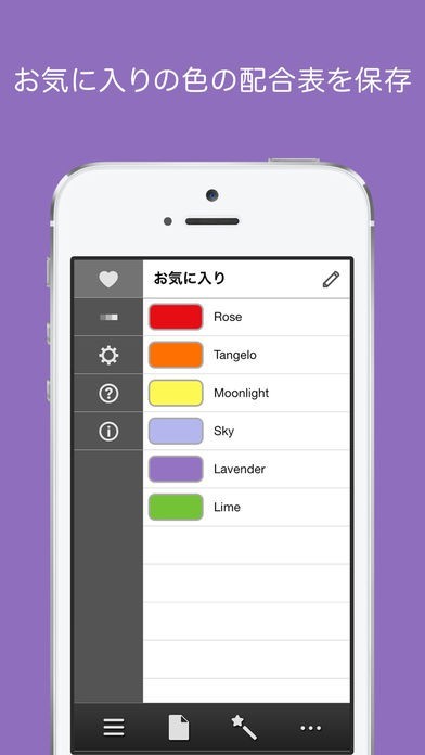 新しい色を作ったり、イメージ通りの色を作りたいときに、色を混合させていきます。出来上がったらお気に入りとして保存します。友達に教えたいときは、色の配合表を共有することができます。