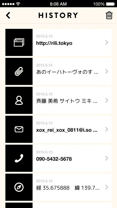 様々な形式のQRコードの読み取りを行うことができる読み取りアプリが「RiLi Reader」になります。QRコードというと電話番号やメールアドレスなどの連絡先を交換するのに利用している人が多いですが、このアプリでは連絡先だけでなくテキストや位置情報、SNSサービスなどの情報をQRコード化したものを読み取ることが可能となっていて、読み取ったデータに適したアプリを起動してくれます。QRコードにかざすだけで自動的に読み取りを開始してくれるようになっているほか、読み取った履歴を10件まで保存することが出来るので保存し忘れていたデータも後から確認することができます。