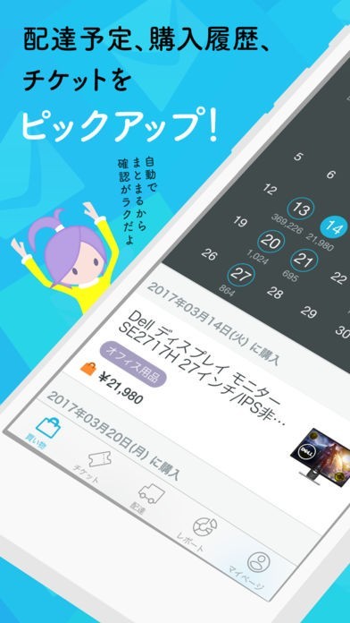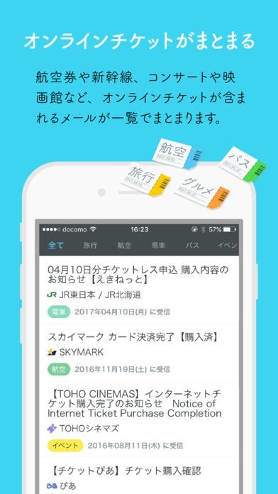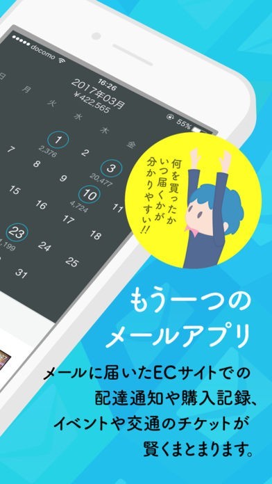 App Storeより引用メール連携だけで、配達予定、購入履歴、フライトやコンサートなどのチケットをピックアップ!もう一つのメールアプリ。