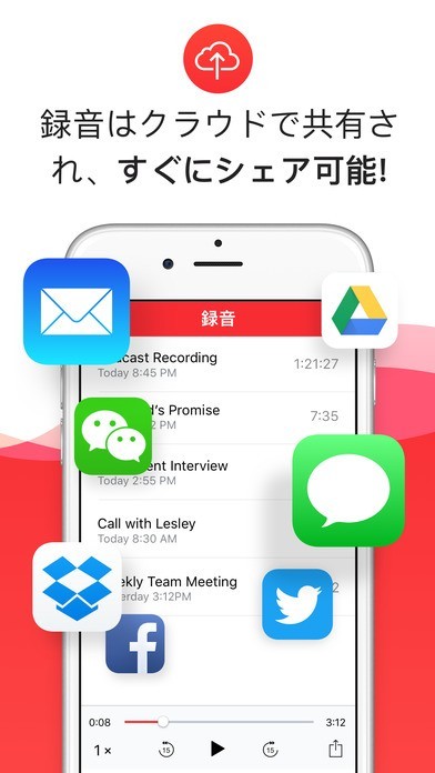 録音したデータをクラウドストレージやSNSでシェアすることが可能となっているので、TwitterやFacebookなどで情報を共有することが出来るようになっています。