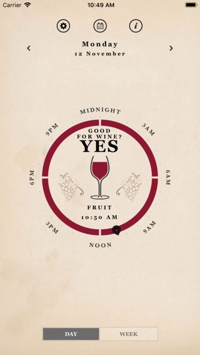 そろそろワインを開けたいけど、いつにしようか迷っている。そんなとき、アプリを開いてください。ワインが美味しく飲める曜日はもちろん、時刻まで細かく教えてくれます。アプリを参考に美味しいワインを頂きましょう。