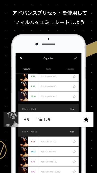 「VSCO」には様々な写真加工機能が付いています。 まずは加工したい写真にフィルタをかけていきます。 多種類のフィルタがあるため、お好みで選ぶことが可能です。 フィルタをかけた後は露出や明瞭度、彩度、フェードなどの微調整を行っていきます。 インスタグラムでも加工が行えますが、高度な加工までは行えません。 ユーザーの目を引くような写真に中々仕上がらないことがありますが、そんな時に使える加工機能となっています。 納得できる仕上がりになった写真は他のユーザーとシェアできる機能が付いています。 他のユーザーが加工した写真も見られるため、アイデアが出ない時は参考にしたいという時にも便利です。
