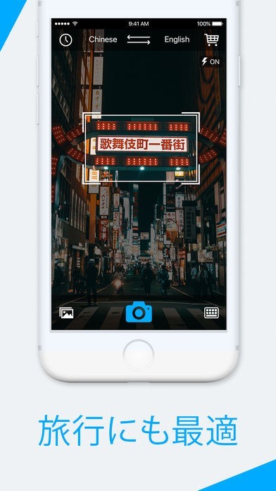 カメラをテキストに向けてボタンを押すと自動的に指定した言語に翻訳してくれる