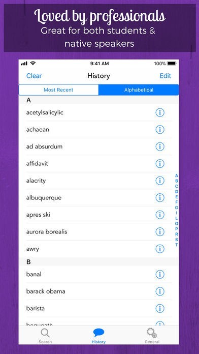 語学学習に利用する場合に履歴機能が便利に使えます。最大1000個の履歴はオフラインでも使えるので、いつでも単語の習熟度をチェックすることができます。履歴の編集も簡単に行えます。