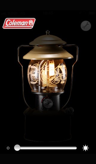 キャンプ用品を古くから扱っている老舗ブランドコールマンの歴史的なモデルを含んだ9種類のランタンの明かりを、スマートフォンで利用することができるアプリとなっています。