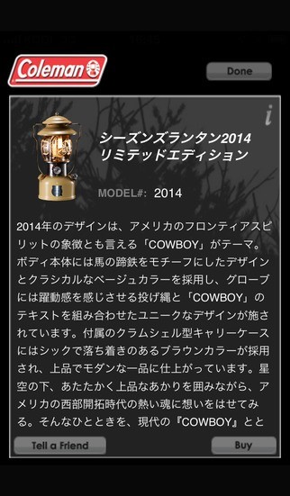 収録されている9種類のランタンの中から気に入ったものがあったら、アプリからコールマンのホームページへアクセスしてランタンの確認をすることができるようになっています。