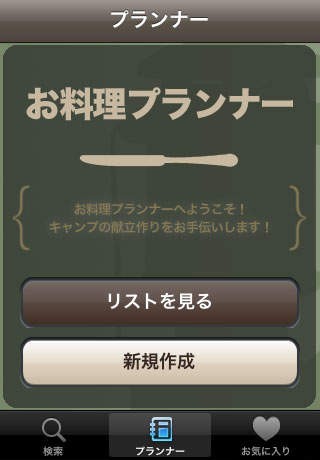 大手アウトドア用品メーカーであるコールマンがキャンプで楽しめるレシピをお届けしてくれるアプリが「CAMPレシピ」です。調理方法や調理器具、使用する食材などからレシピを検索することができるようになっているので、使える器具や調理方法などが限られているキャンプでの料理でも使えるものに合わせてレシピを探すことができるようになっています。気になったレシピはお気に入り機能で登録しておくことで、すぐに呼び出すことが可能になっています。